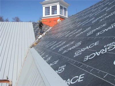 At Pro Roof Group, we install standing seam metal roofs using a full-coverage, high-temperature peel-and-stick ice and water shield across the entire roof deck before any metal panels are installed. This self-adhering membrane is engineered to withstand extreme heat while providing superior adhesion, waterproofing, and protection around fasteners, seams, and penetrations.